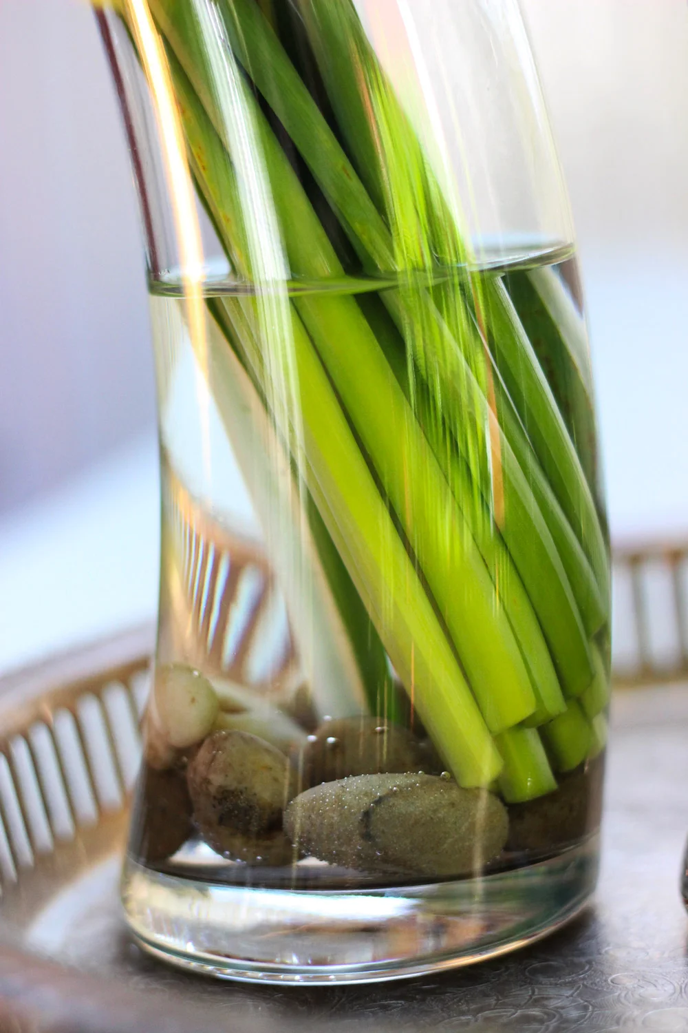 This is the first post in a Series called "Getting Ready for Spring". Spring is coming and the daffodils are out. These bright cheery flowers always remind us of Easter. This is a very simple arrangement made with a simple flower, but the clean lines, the curve in the vase and curve made with the flowers make this a modern arrangement. It is easy, but you do need to get the shape that you will need for the flowers and then cut the stems to achieve that shape. If you have your vase, rocks and daffodils then you are ready to roll. Let's go.